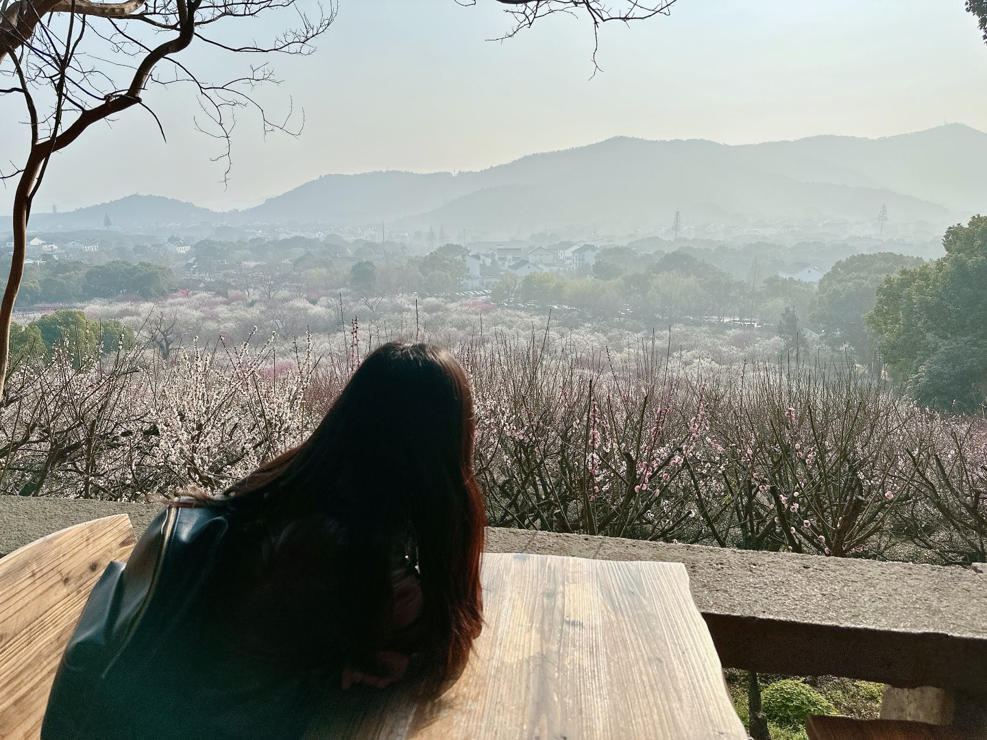 距离上次来香雪海赏梅有十年了。那次是一家四口来的。