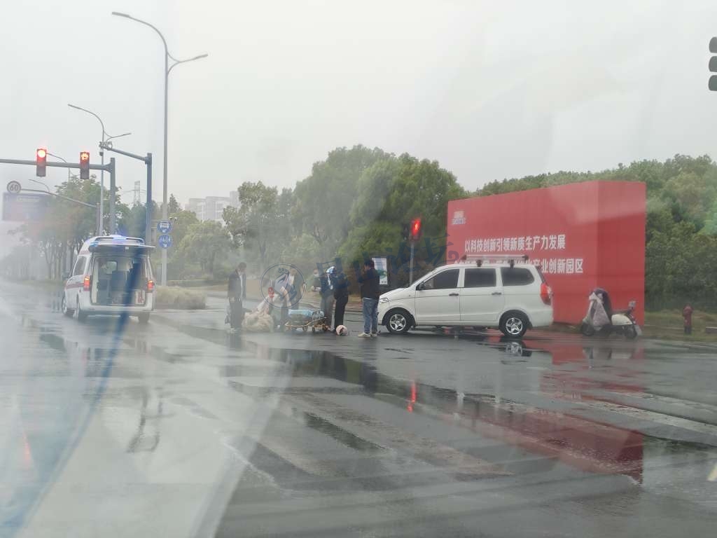路边社快报,今天早上九点一刻左右,在我市高新区中华园西路与鼎臣路口发生一起机动车撞到电瓶车事故,有人员受伤,JC蜀黍未到,120急救车9:30赶到,受伤人员已经被救护。