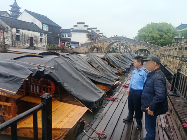 排查辖区重点非通航水域,重点关注周庄、锦溪、千灯、计家墩等景点水上营运情况,确保游览航行安全。
