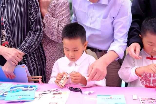 ▲小市民在“防震减灾”摊位搭建“地震报警”机器人