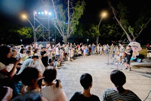 “不知道不明了不想要,为什么我的心……”夜幕刚降,昆山开发区时代公园周边就飘起了熟悉的旋律。开发区艺匠何东旭怀抱着吉他,在雕塑小广场的灯光下轻声吟唱,从鹿先生乐队《春风十里》的温柔缱绻,到周华健《有没有一首歌会让你想起我》的轻快明朗,一首首经典老歌仿佛时光机,引得散步的市民驻足聆听,不少人随着节奏轻轻哼唱,嘴角不自觉扬起笑意——这动人一幕,正是昆山“企超”赛事带来的精彩缩影。跟我们一起来看看开发区的“企超”主场氛围吧!