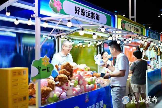 在这一区域,毛绒玩具、手工织品等摆满后备箱,商家市民共享这烟火市集的快乐!