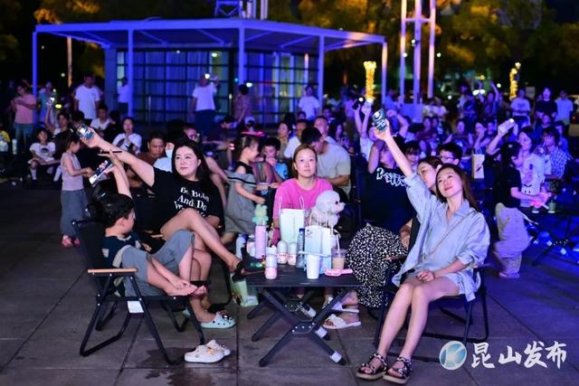 随着夜色降临,主舞台区艺匠演出轮番上演,露营休闲区的自助点唱机提供经典曲目,吸引市民自行点唱。两处户外巨幕投影还可以实时转播“苏超”赛事,穿插放映热门电影,成为球迷与影迷的“第二现场”。