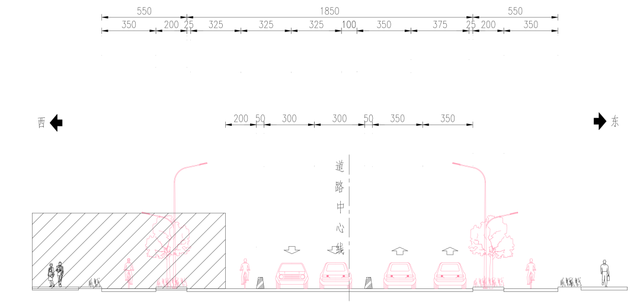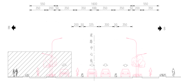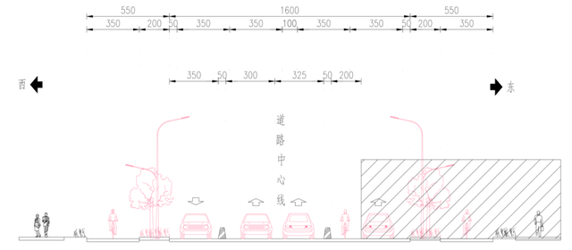 ① 交叉口渠化拼宽,优化公交站台位置,并进行港湾化改造;
