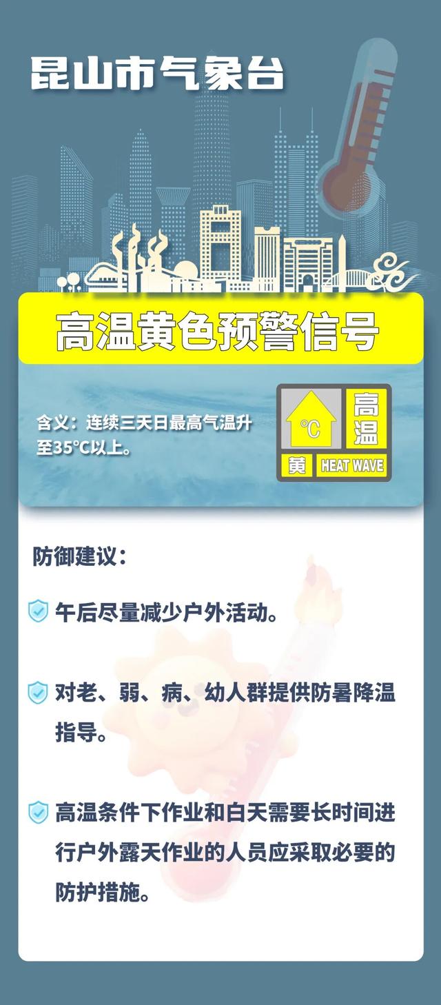 注意防暑降温!昆山市气象台发布高温黄色预警信号