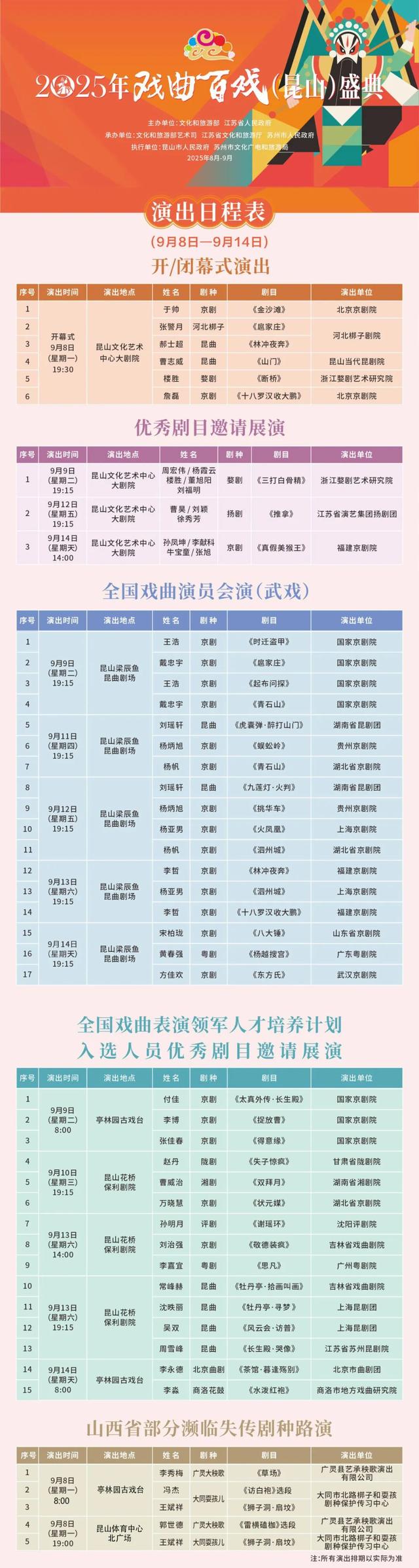演出地点在亭林园古戏台和体育中心北广场,精彩地方戏曲送到家门口。