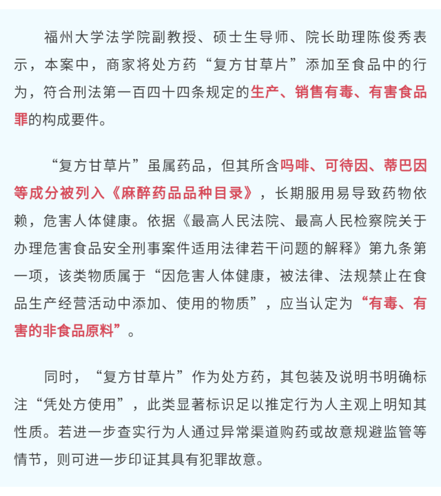在销售的食品中添加“复方甘草片”