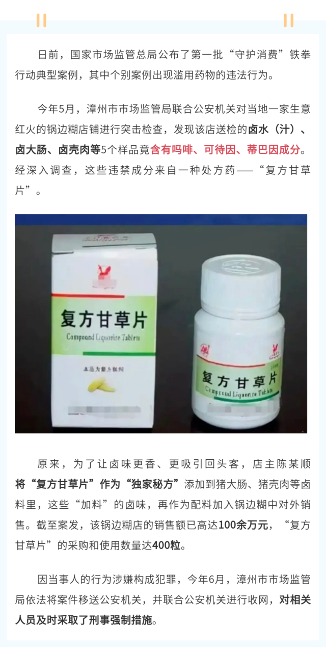 ——违规使用“复方甘草片”加工卤料