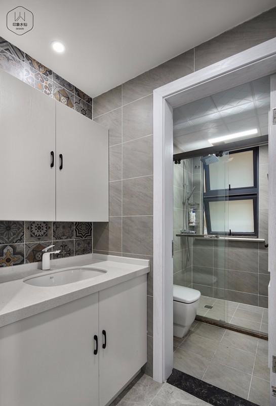 干湿分离的卫生间,看起来空间不大,却有很好的功能性。灰色与白色的结合,带来清爽且让人舒适的感觉。