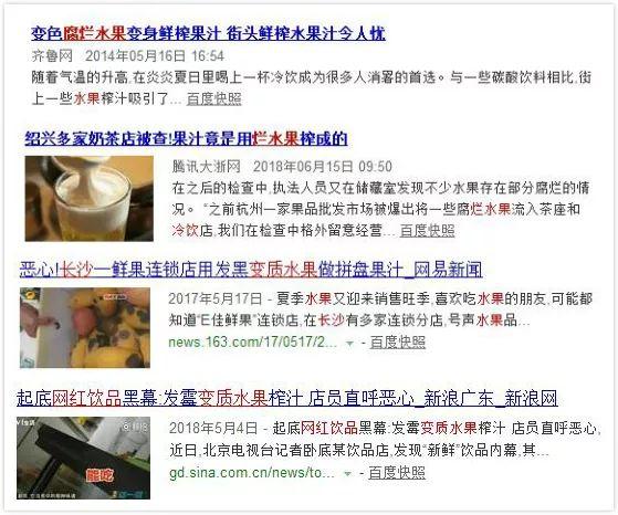 多家媒体爆料,为了节约成本,果汁店专用腐烂变质的水果来榨汁。