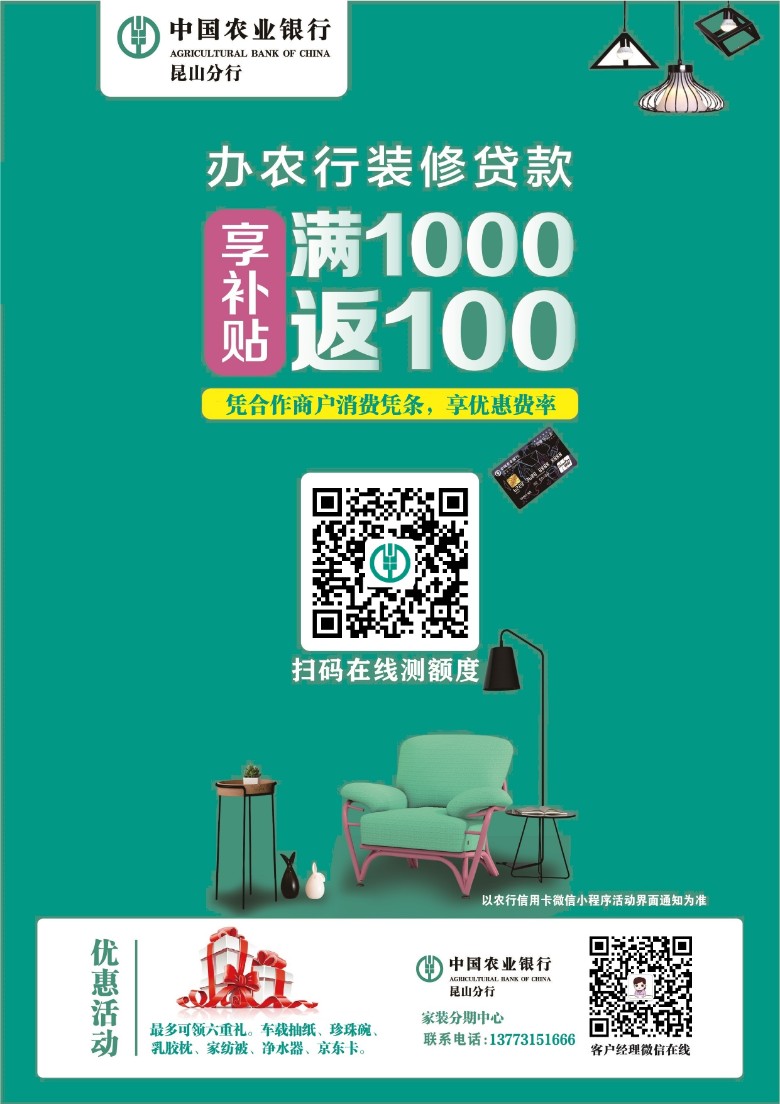 中国农业银行昆山分行超低装修贷,