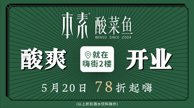 7.8折!本素酸菜鱼昆山万象汇店5月20日盛大开业啦