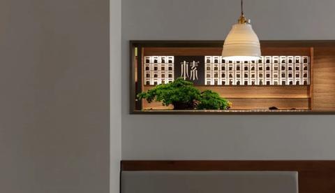 墙面上采用了富有自然的夯土板来装饰,流动的肌理感,把整个空间无形中紧密的连在了一起