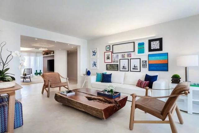 下图案例有取舍地在客厅中留出了几平米,虽然缩小了客厅的面积,但与餐厅之间隔出了一个茶室,不仅好看,还能烘托出主人高质量的生活氛围。