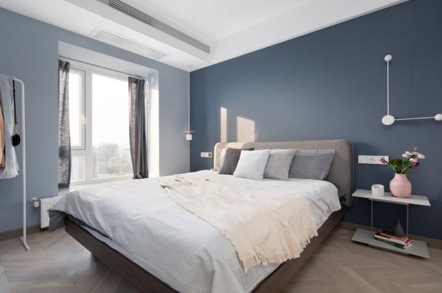 在蓝色当中加入一些灰色,或者是选择更为深一些的蓝色,就可以带来完全不一样的体验了,深沉的蓝色更适合用在卧室内,营造出静谧、悠闲的感觉。