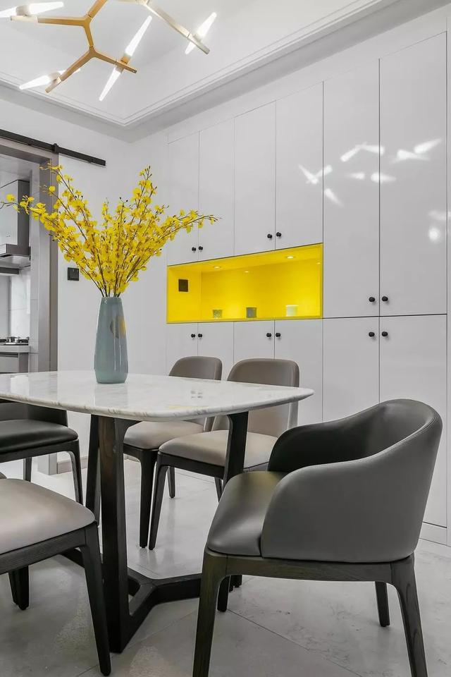 餐厅利用墙体做了储藏装饰柜空间,提高了空间利用率。
