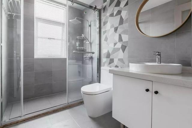 简洁的卫生间配上灰色调的砖显得格外淡雅。