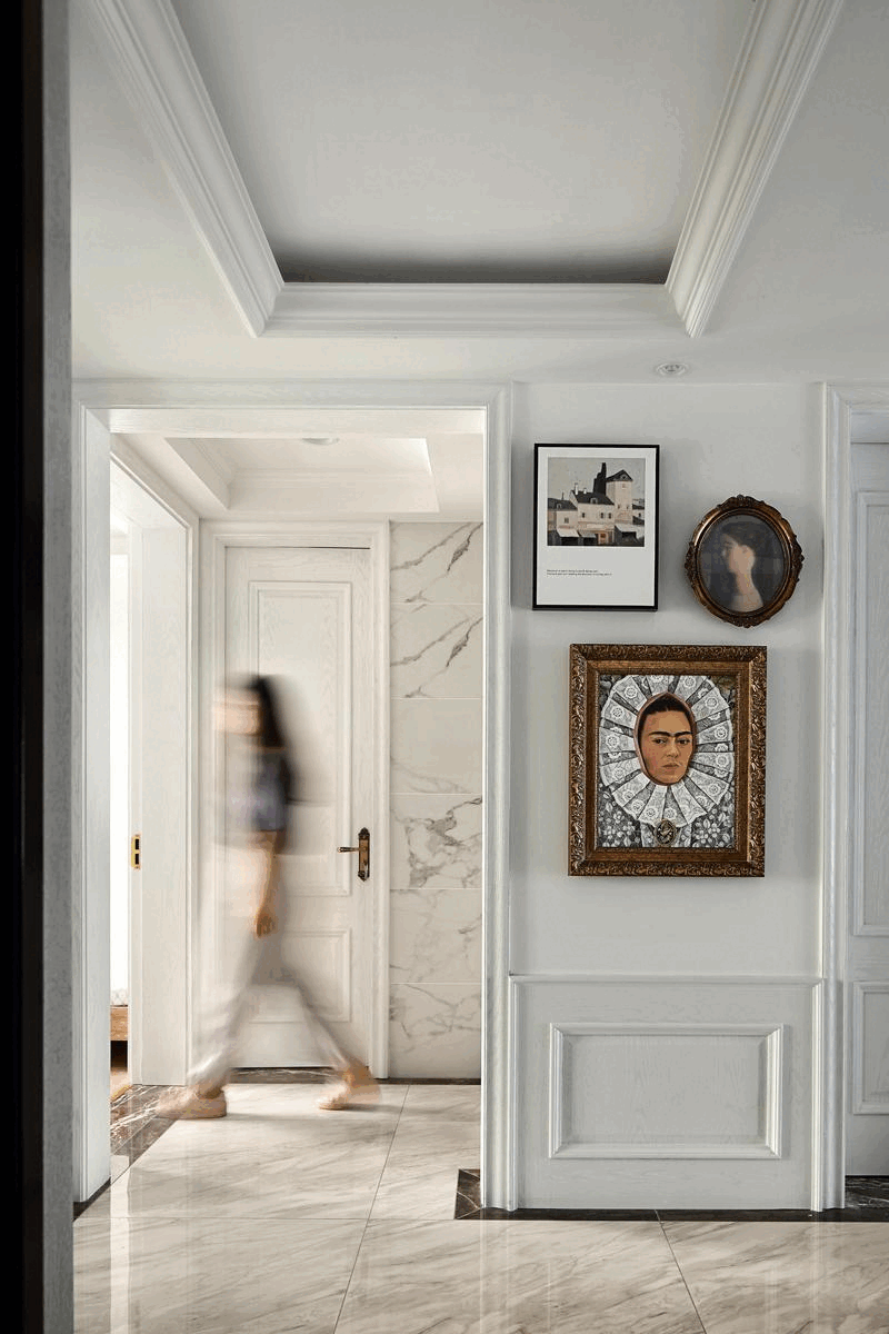打开门复古感就扑面而来,首先映入眼帘的就是墙上几幅风格鲜明的挂画,还有线条感十足的墙面,充斥着艺术气息!