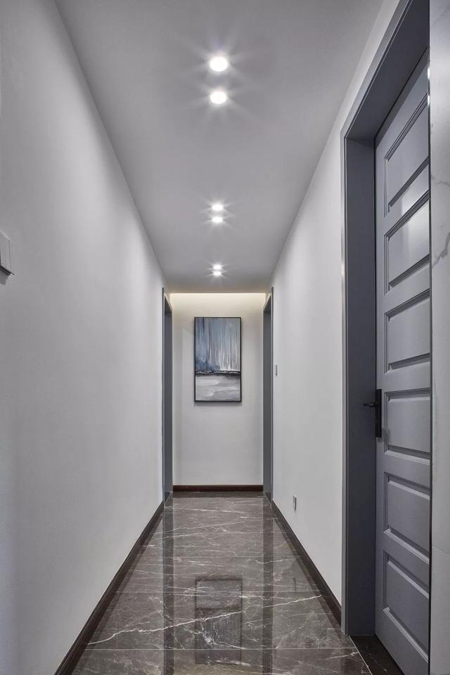 通往卧室的走道,门和尽头的挂画就成了所有的亮点,仿大理石的瓷砖地面从客餐厅一直延伸到卧室口。
