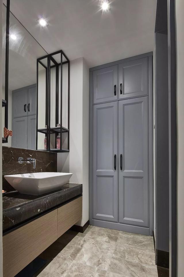 主卫的设计也非常特殊,把洗手台放在了卫生间外面,到顶的衣柜和镜子满足了卫生间的收纳,又扩大了这个空间的视觉感。