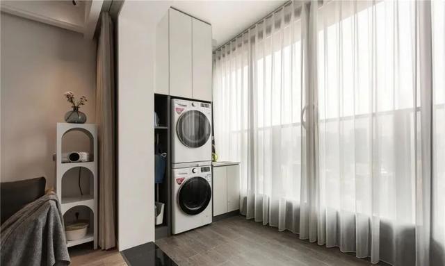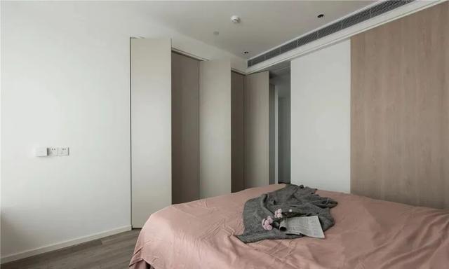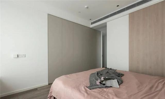 入墙式衣柜设计简洁利落,与墙面保持统一,视觉上不突兀,储物空间也非常大。
