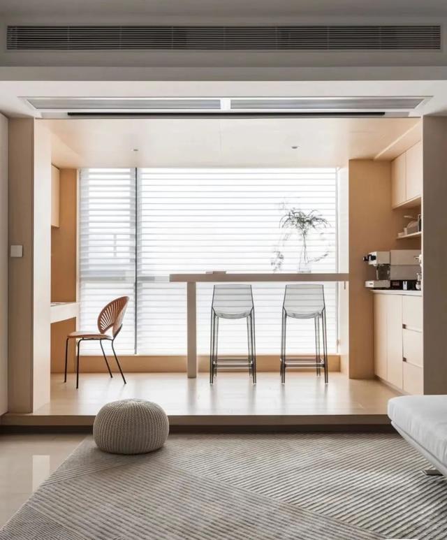 阳台打通之后,拓展的区域可以当做娱乐区、办公区、休闲区、喝茶区都可以,这样阳台的局限性就被打开了。