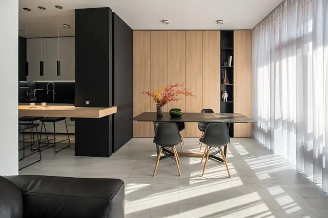 装修的时候,建议把玻璃推拉门拆掉,这样一来,保留两块空间的贯通性,客厅看起来就会特别敞亮。