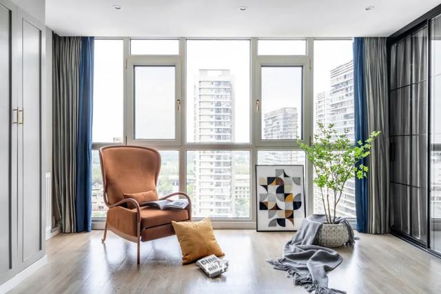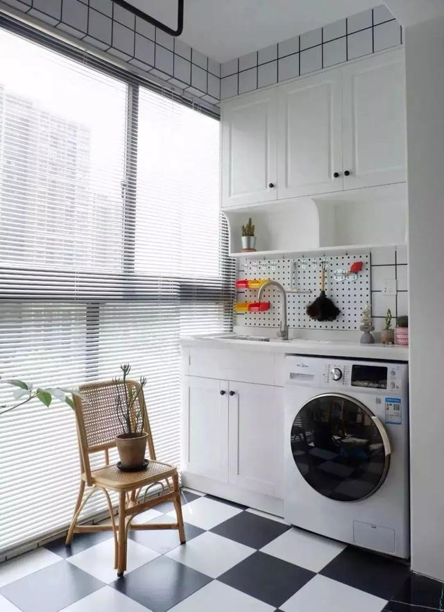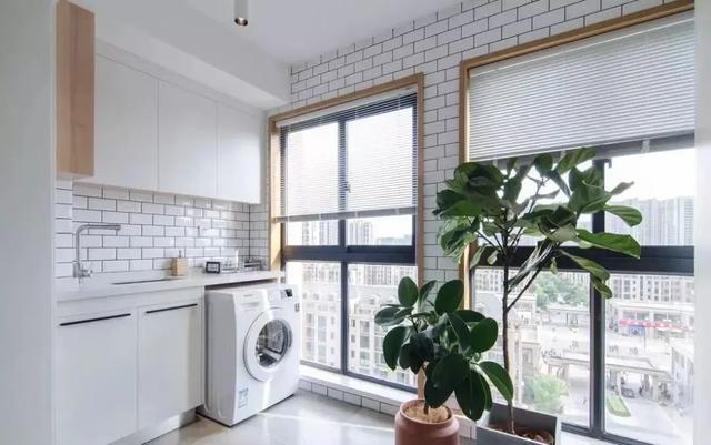 如果无法接受烘干机烘干的衣服,可以考虑将晾衣区设置在阳台一侧,晾衣架不安装在阳台中间,将阳台一侧单独规划出一块晾衣区,无论什么季节都能穿上干爽的衣服,并且在客厅基本上看不到晾晒的衣服,也不影响阳台其他功能空间使用,是当下比较受欢迎的阳台布局模式。