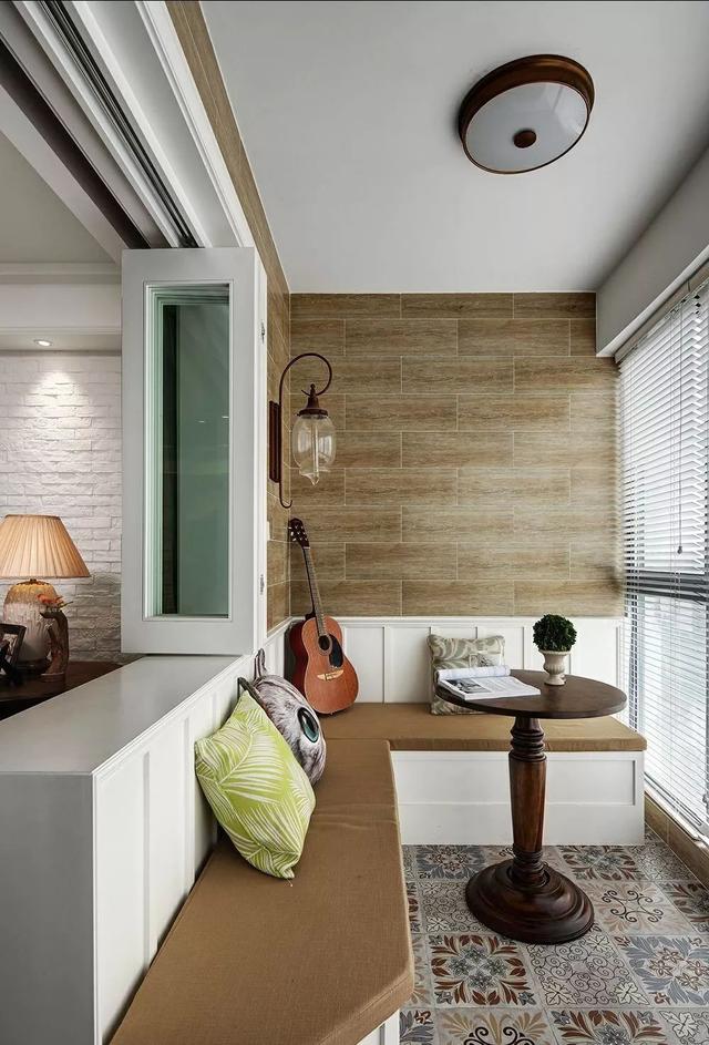 阳台墙面砖挑选时,需秉承三个原则,即防水、防晒、防污。因此,文化砖、木纹砖、釉面砖等都十分合适,与室内打通的阳台,墙面瓷砖的颜色尽量与整体的家居色调保持一致,避免太过突兀。