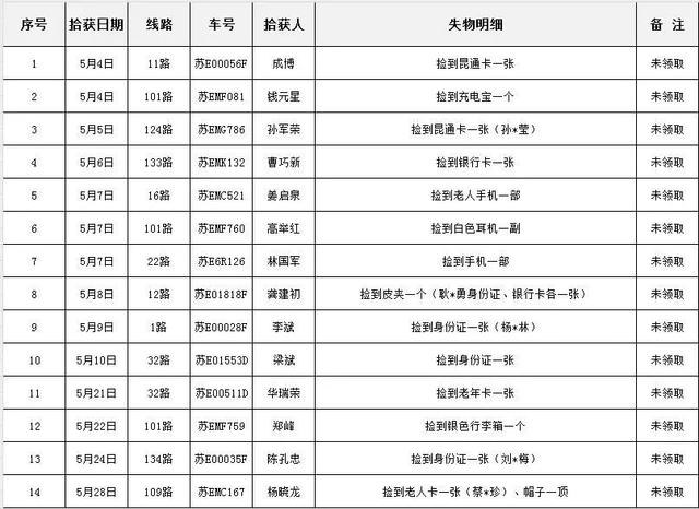 【昆山公交正能量】5月职工中涌现好人好事154起,归还失物123件