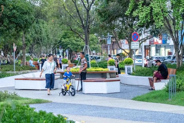 位于红峰幼儿园北侧的魔方园,每到学生上下学时间,学校周边围满接送孩子的家长,小游园在改造中因地制宜,利用小微空间,结合树池改造,增设了一批公共座椅,方便家长等待休息,也为周边居民提供了邻里交流的场所。