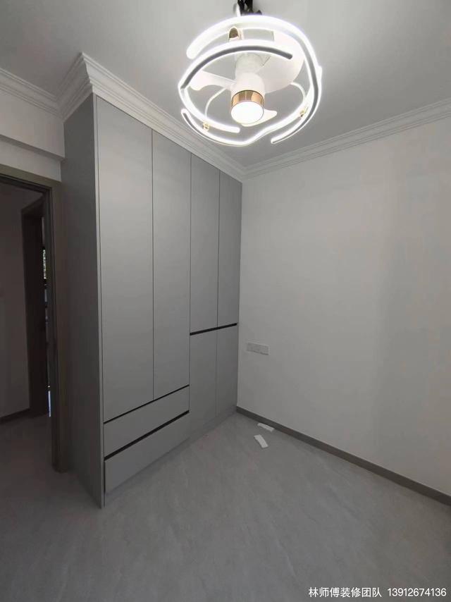 两个次卧,除了到顶的大衣柜之外,都安装了风扇灯,不仅颜值高,还非常实用,尤其是对于一吹空调就容易生病的小宝贝和老人,这简直太好用了。
