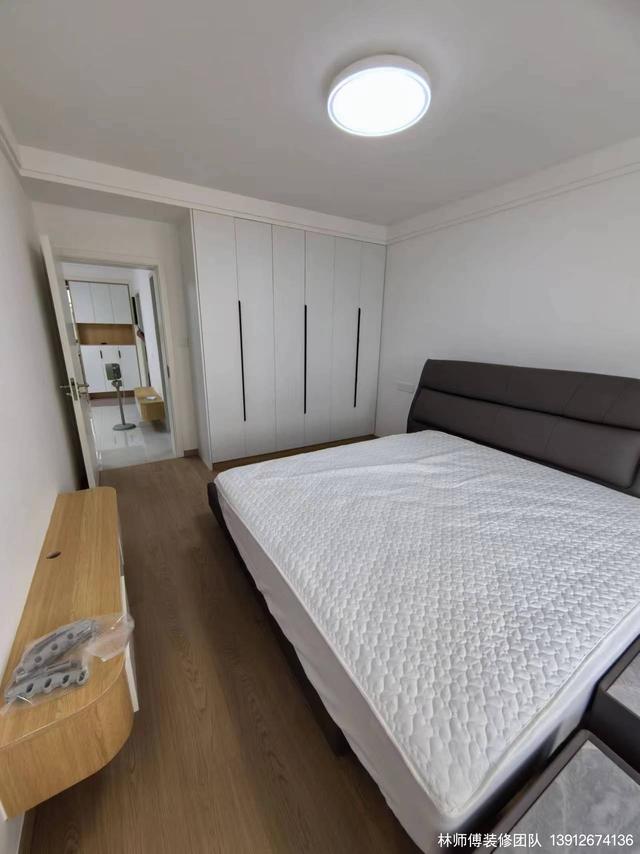主卧比较宽敞,除了舒适的软包大床外,还有床头柜、衣柜、电视柜,让房间的收纳能力瞬间提高!