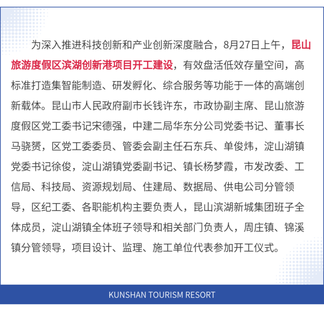 打造高端创新载体!昆山旅游度假区滨湖创新港项目开工建设