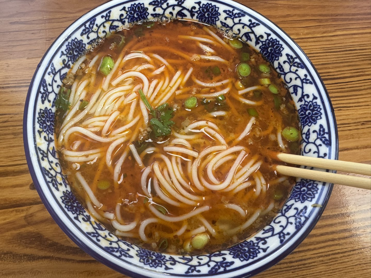 无意中发现那边有个苏润超市,东西蛮多,价格比我家对面小超市便宜,关键里面人气不错,很有烟火气,后面打算多去去。买完东西去吃了酱香米线,要的微辣,我其实没怎么吃过米线,觉得味道不错,老妈也说好吃的