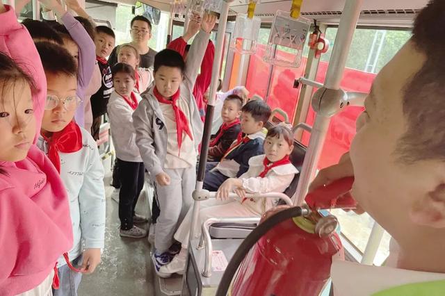 工作人员还邀请学生们登上公交车,详细介绍了安全锤、灭火器、逃生窗的用途和用法,向同学们普及了在紧急情况下通过应急控制器打开车门逃生等方面的要领。