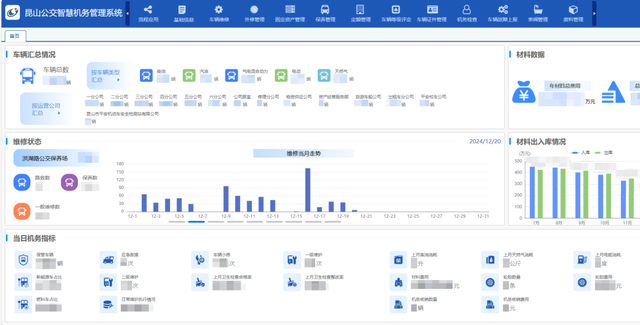 昆山公交智慧机务系统上线,建立从车辆建档、运行、检修、保养、报废的全生命周期管理流程,对基础数据进行深度挖掘,提供企业科学统计分析,辅助决策,降本增效,提升工作效率。