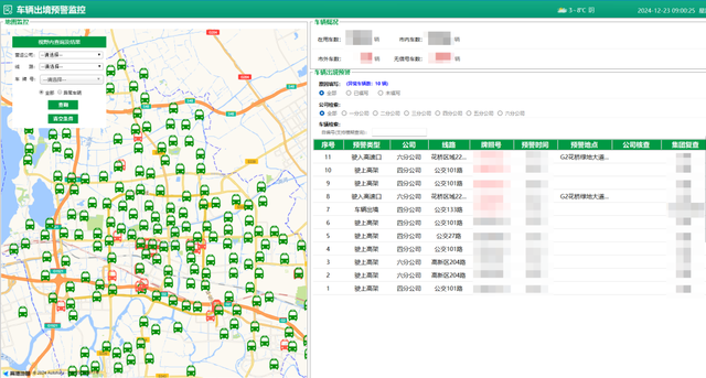 昆山公交智能营运系统增加车辆异常行驶的监控预警,包括公交车辆出境、驶上高速、驶上高架的监控,帮助监控中心人员加强对车辆的日常运营的监管,提升行车安全。