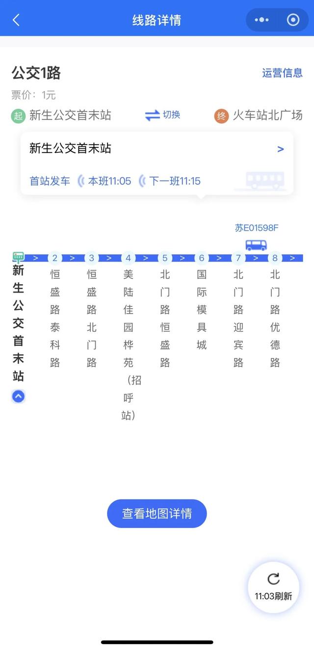 在线路查询界面下方增加了线路信息地图查看功能,更直观地展示各站点的地理位置信息、距离信息以及车辆的实时定位,解决了市民乘客对于陌生站点地理位置模糊的问题。