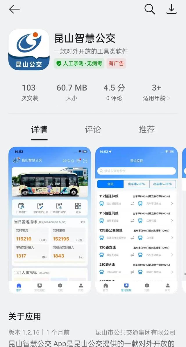 昆山智慧公交APP在华为、苹果、荣耀、OPPO、VIVO手机应用市场上架。