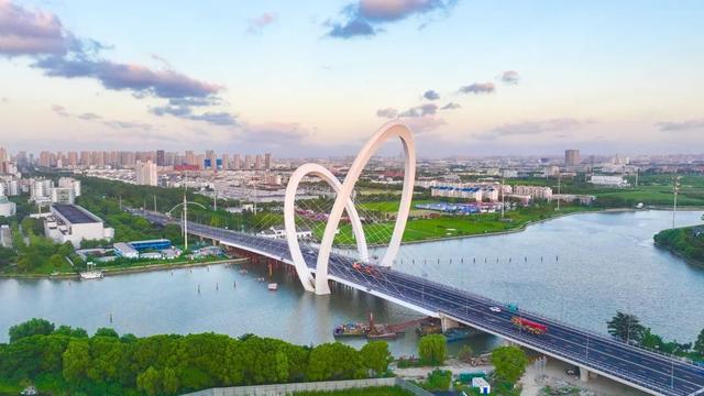 苏州内河最高桥震川桥完工通车,青阳港航道再添一道靓丽风景。