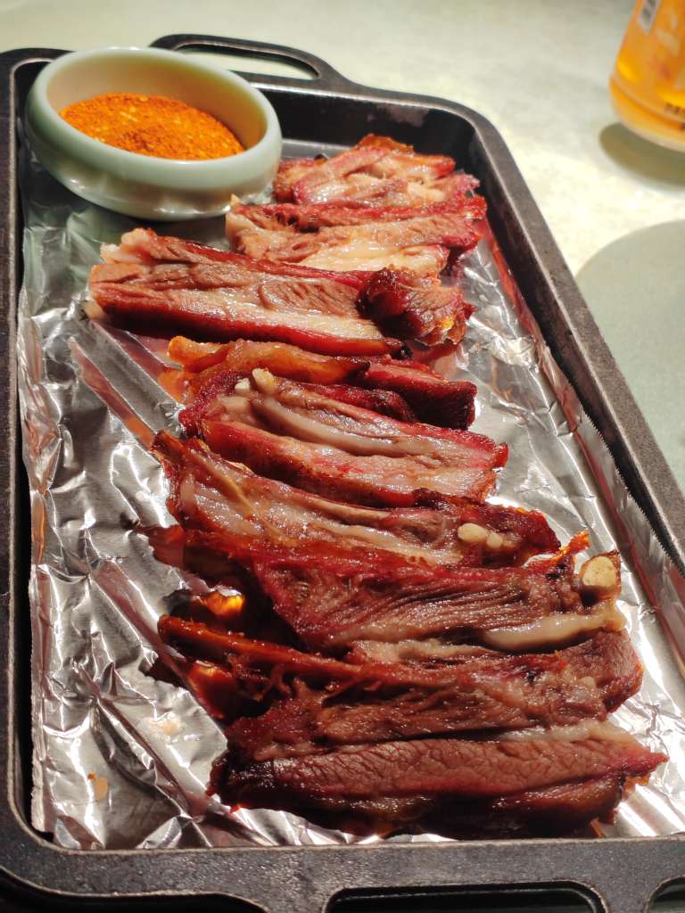 )。这两天吃的有点腻住了,晚上我不准备吃了。我刚跟他说“你们父女两,待会随便弄个大白菜牛肉锅,炒个蛋炒饭吧”,他跟我说“还有卤猪脚呢”