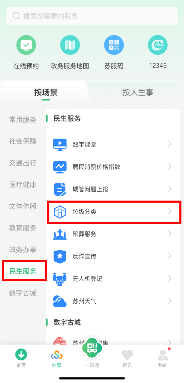 打开“苏周到”APP,选择“民生服务”栏目的“垃圾分类”,点击“大件垃圾预约”模块,选择相应版块后填写相关信息,即可完成预约。收运单位接单后会主动联系市民,请保持电话畅通。