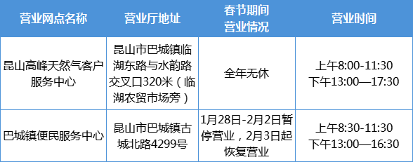 部分网点营业时间有变,请收好春节期间燃气用户“宝典”!