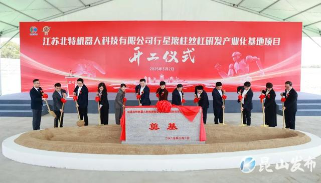 3月2日,江苏北特机器人科技有限公司行星滚柱丝杠研发产业化基地项目开工仪式在昆山开发区举行,助力昆山在人形机器人产业新赛道里加速起跑、抢占先机,为“奋战一季度、勇夺开门红”增添新动能。昆山市委书记陈丽艳;上海北特科技股份有限公司董事长靳坤,总裁靳晓堂;昆山市领导秦微晰等共同为项目培土奠基。