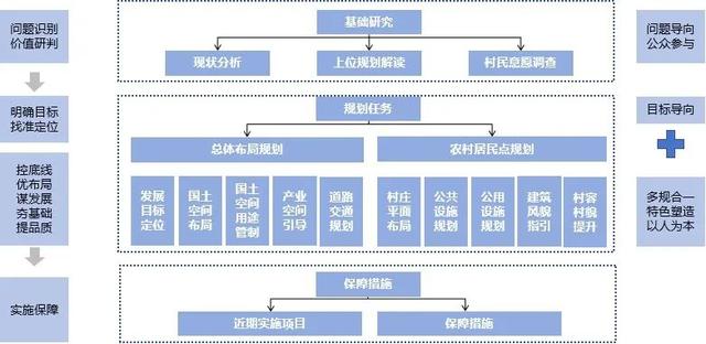 以满足近期项目落地需求、统筹近远期发展及空间预控、协调产业发展与人居保障为目标,基于对村庄现状问题识别与主题诉求研判的基础上,落实上位规划要求,从统筹资源与精准开发、优化布局与用地平衡和关注人居与环境提升等方面开展实用性村庄规划编制,形成可实施的“一张蓝图”。