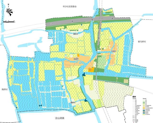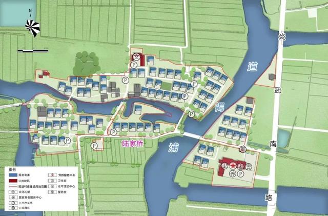 “一心”:依托现状陆家桥村党群服务中心形成村庄的生活服务中心;