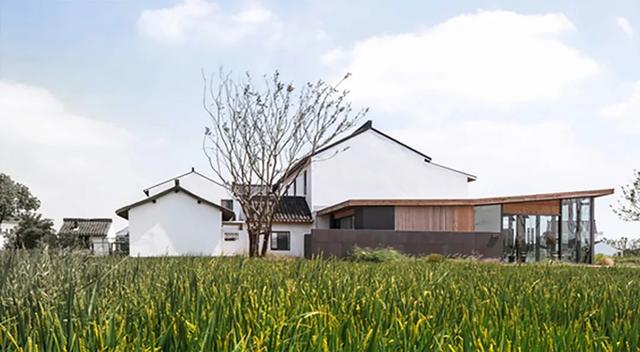 公共建筑以中式现代风格为主,在设计时注重保留乡村的风貌和建筑肌理,主要体现苏南水乡传统建筑元素。建筑主色调为黑白灰,门窗主色调为棕色木纹,建筑立面强调素雅、内敛风格,以白墙、灰顶、木色为主要立面元素,用现代的白色涂料、深色花砖饰面进行重构,保留乡村的自然风韵,彰显田园意境和乡土风情。