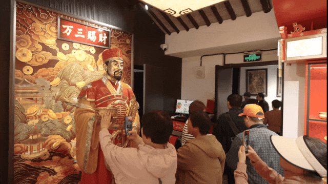 朱炳仁·铜店里,游人触摸财神爷的金算盘,感受非遗技艺的精湛,挑选最心宜的手信。