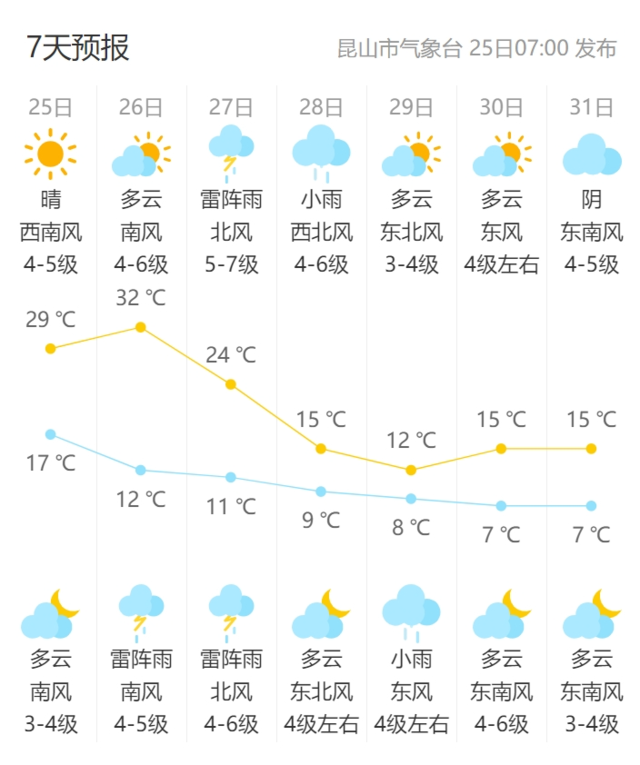 32度到12度!昆山气温断崖式下跌,时间就在…